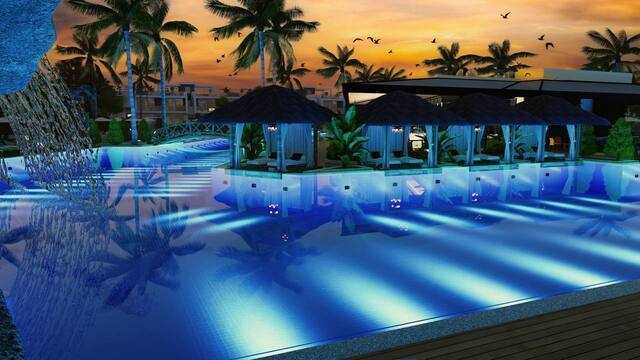 For relaxation and health: Multi-level infinity pools, indoor pool, state-of-the-art fitness center, spa, massage parlors, and Turkish hammam.