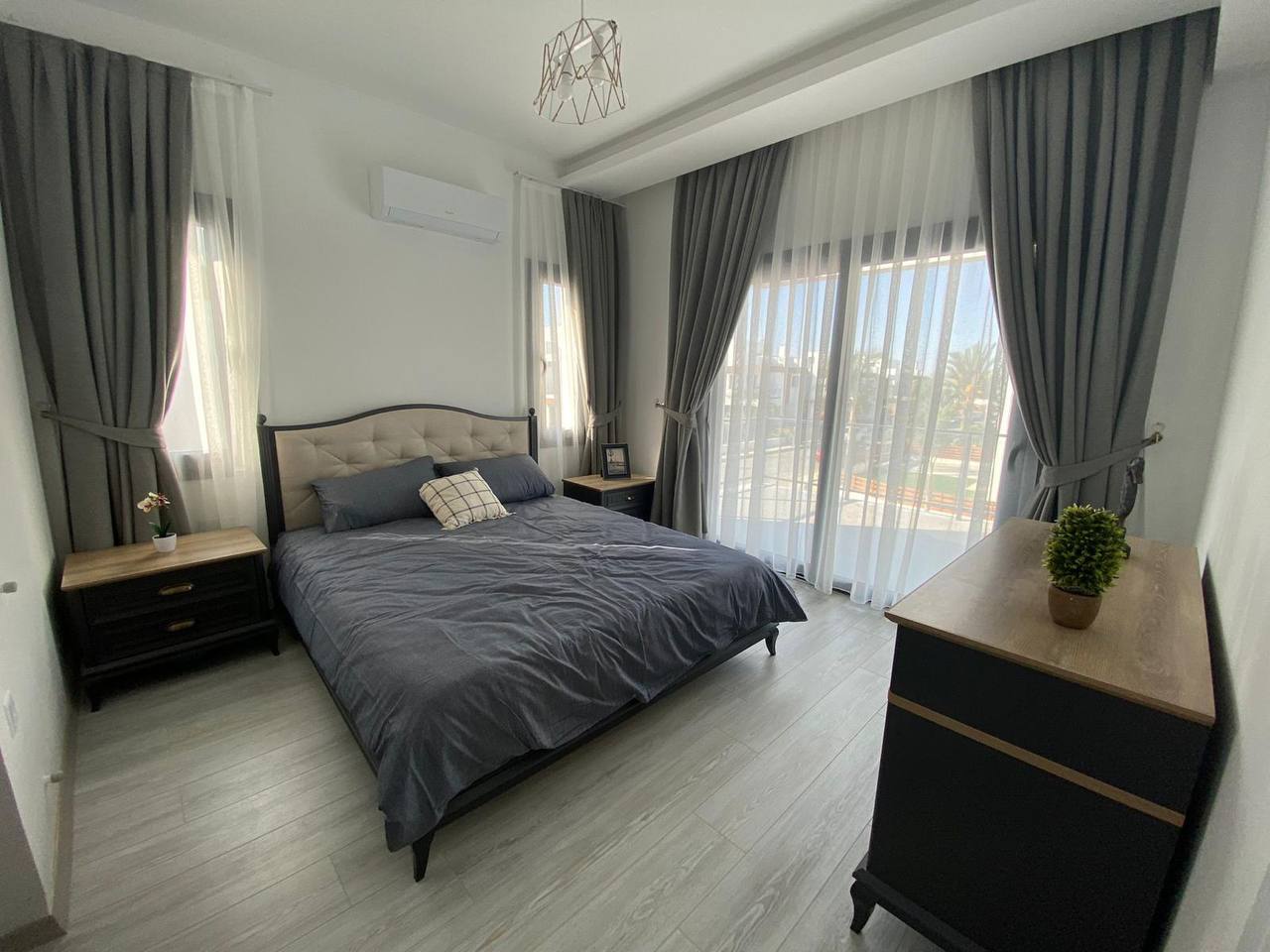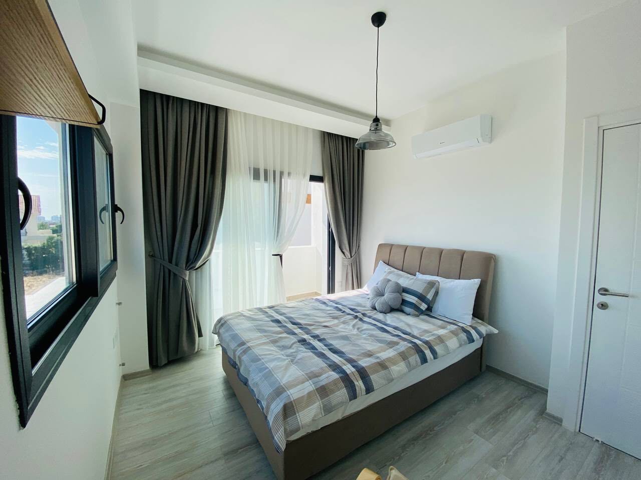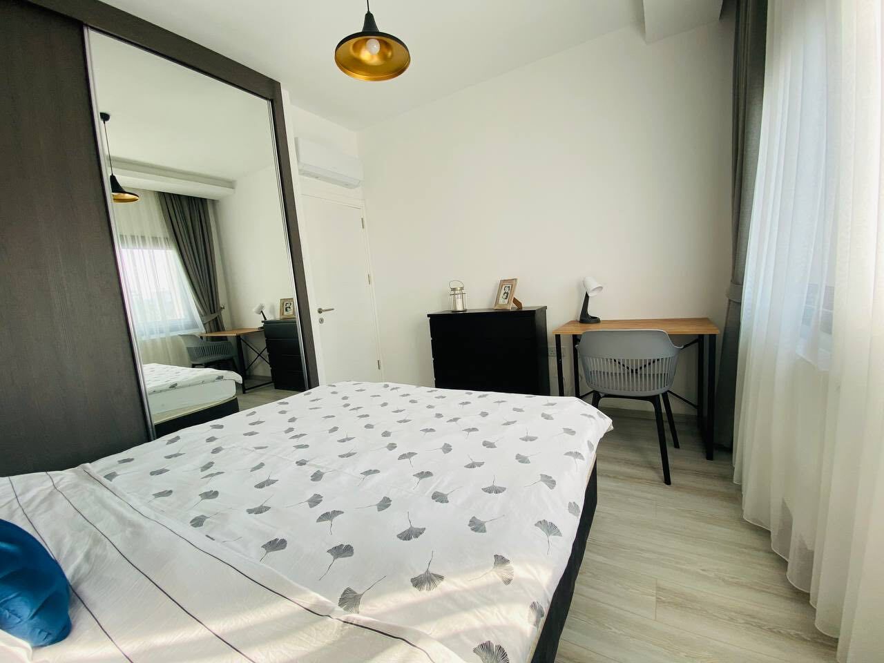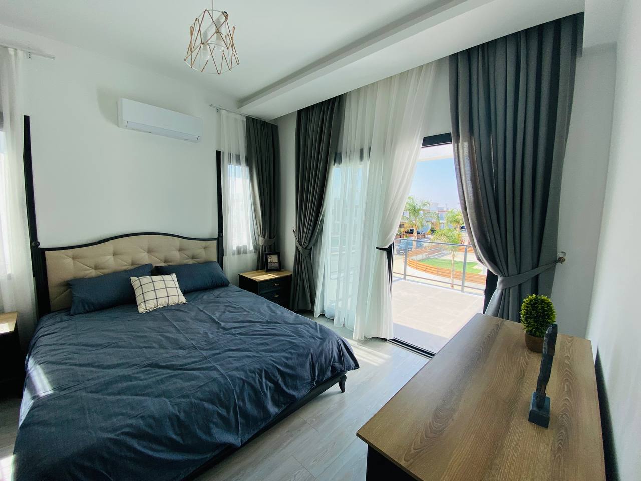 The Sunrise complex with a communal swimming pool is just a 10-minute walk (2 minutes by car) from an equipped beach. Unique transport accessibility: school buses stop right at the complex (Near East and Doga College). Famagusta is 7 minutes away, and the center of Iskele is 5 minutes away. All necessary infrastructure (markets, pharmacy) is nearby.