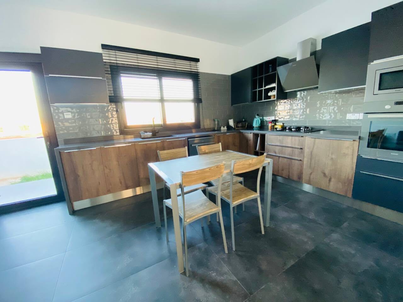 The 155 m² villa is ready to move in and is fully equipped with furniture and appliances, including inverter heating and air conditioning in all rooms.