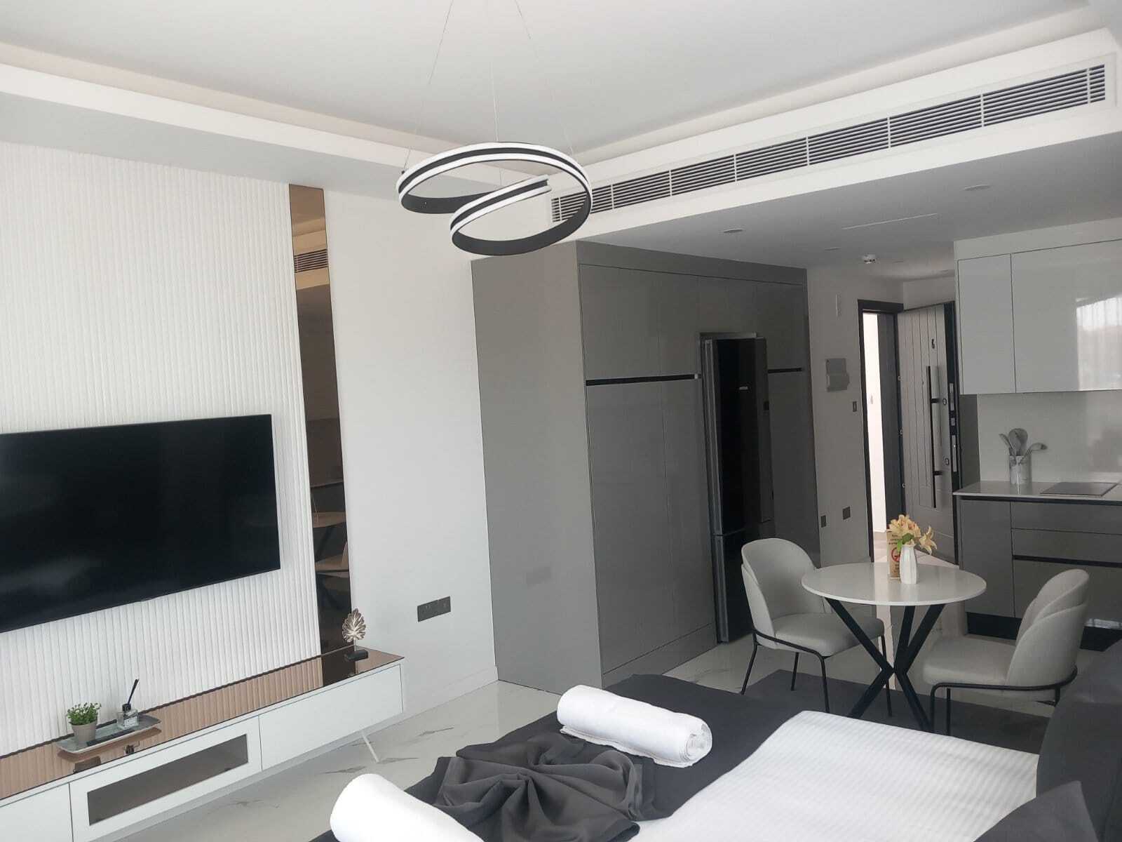 An exclusive studio apartment is offered for sale in the prestigious Iskele Long Beach area. It is fully furnished and equipped with appliances, making it ideal for personal use or profitable rental.