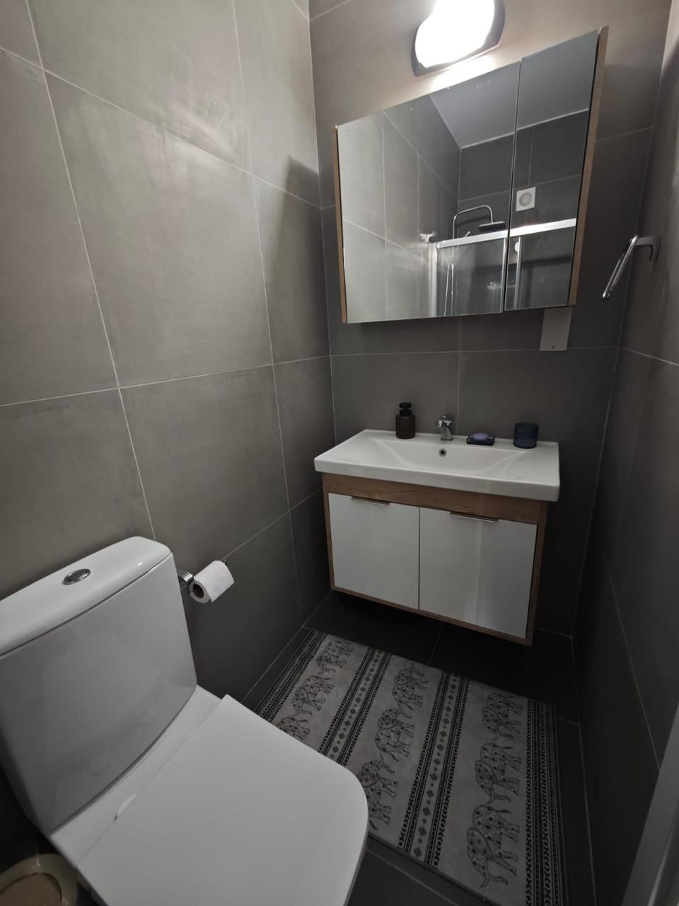 The apartment has an area of 85.5 m², a well-thought-out layout, two bathrooms, two 8.5 m² terraces, and an 85.5 m² roof terrace with sea and mountain views. The apartment is located on the first floor and is fully furnished and equipped with appliances. [A parking space is included.]