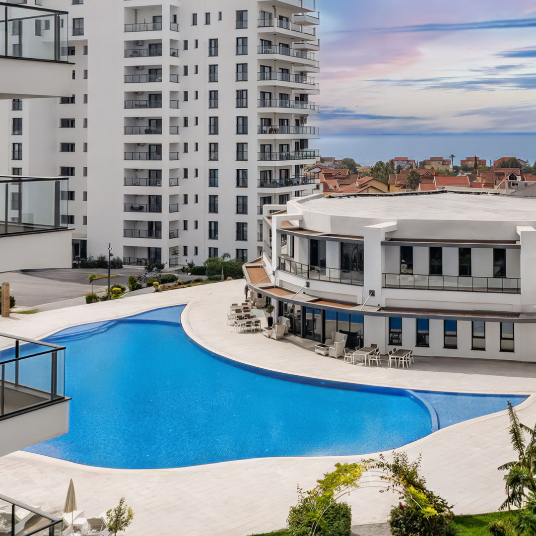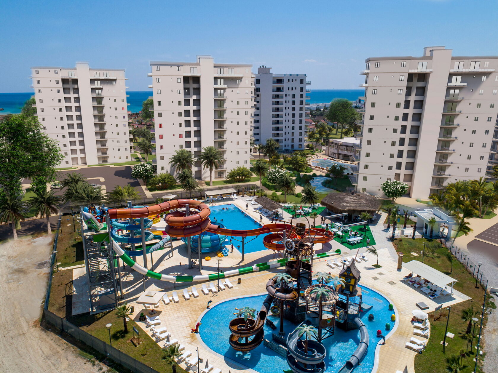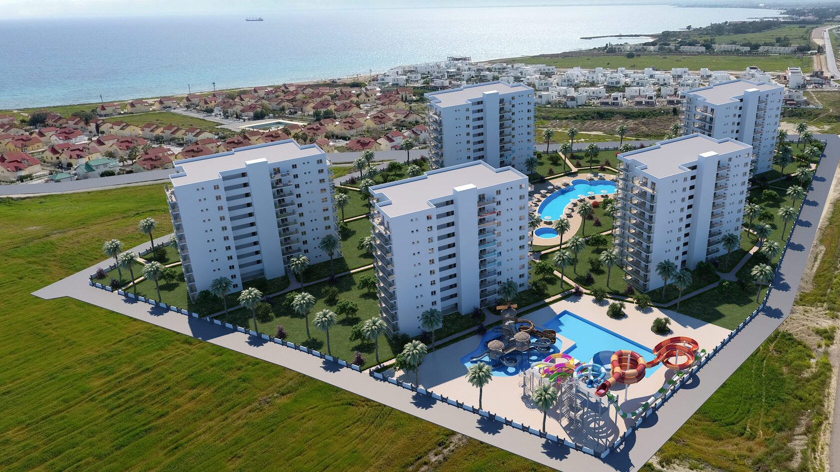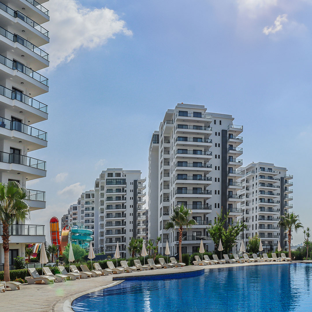 Caesar Blue is a unique project that offers you resort infrastructure. The complex is located just 300 meters from a beautiful sandy beach and includes a huge 400 m² water park with slides and attractions for all ages.