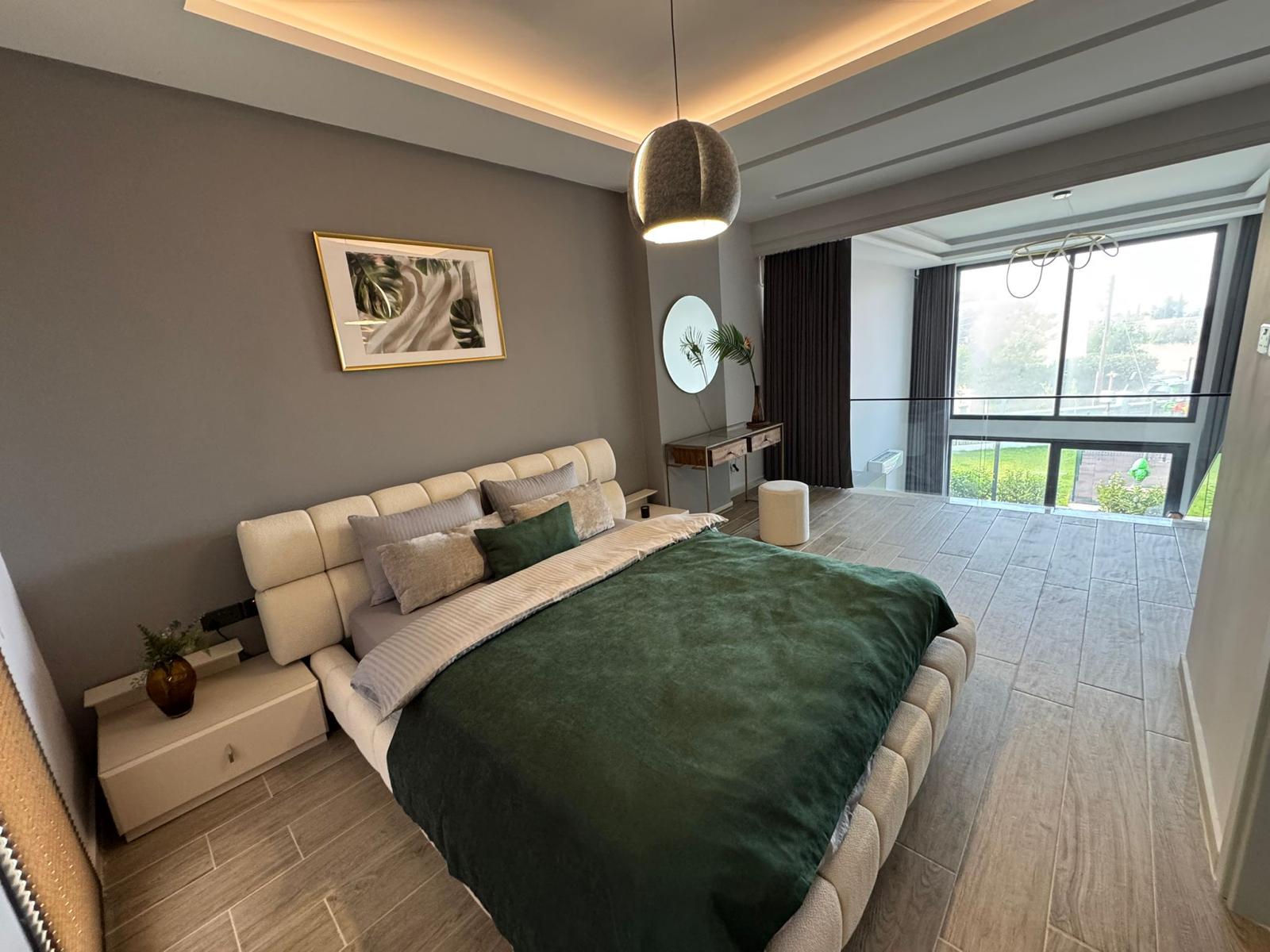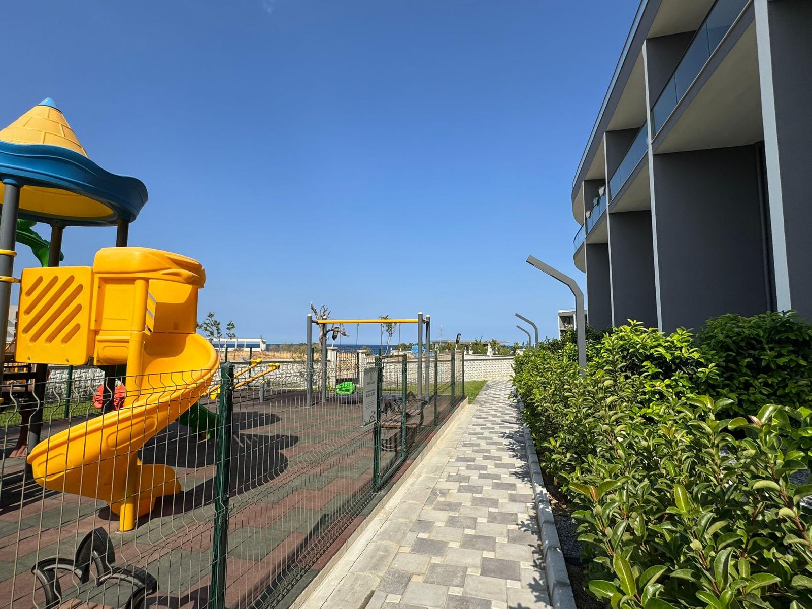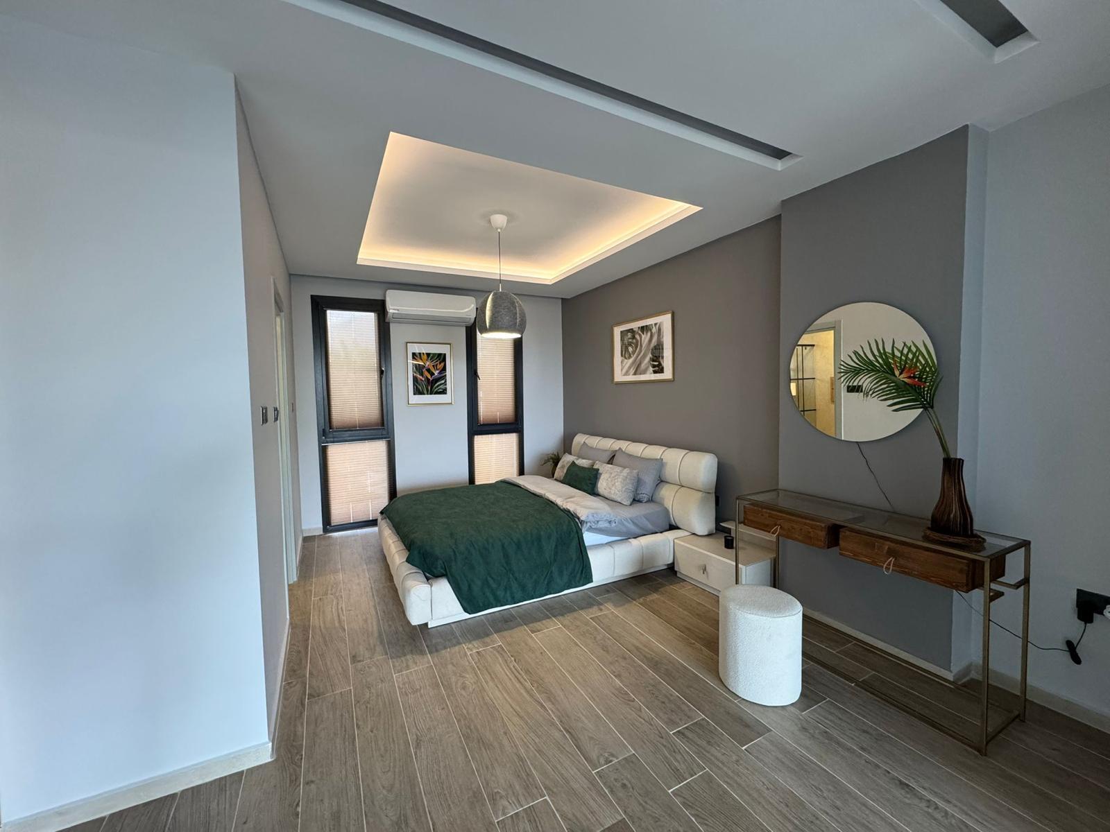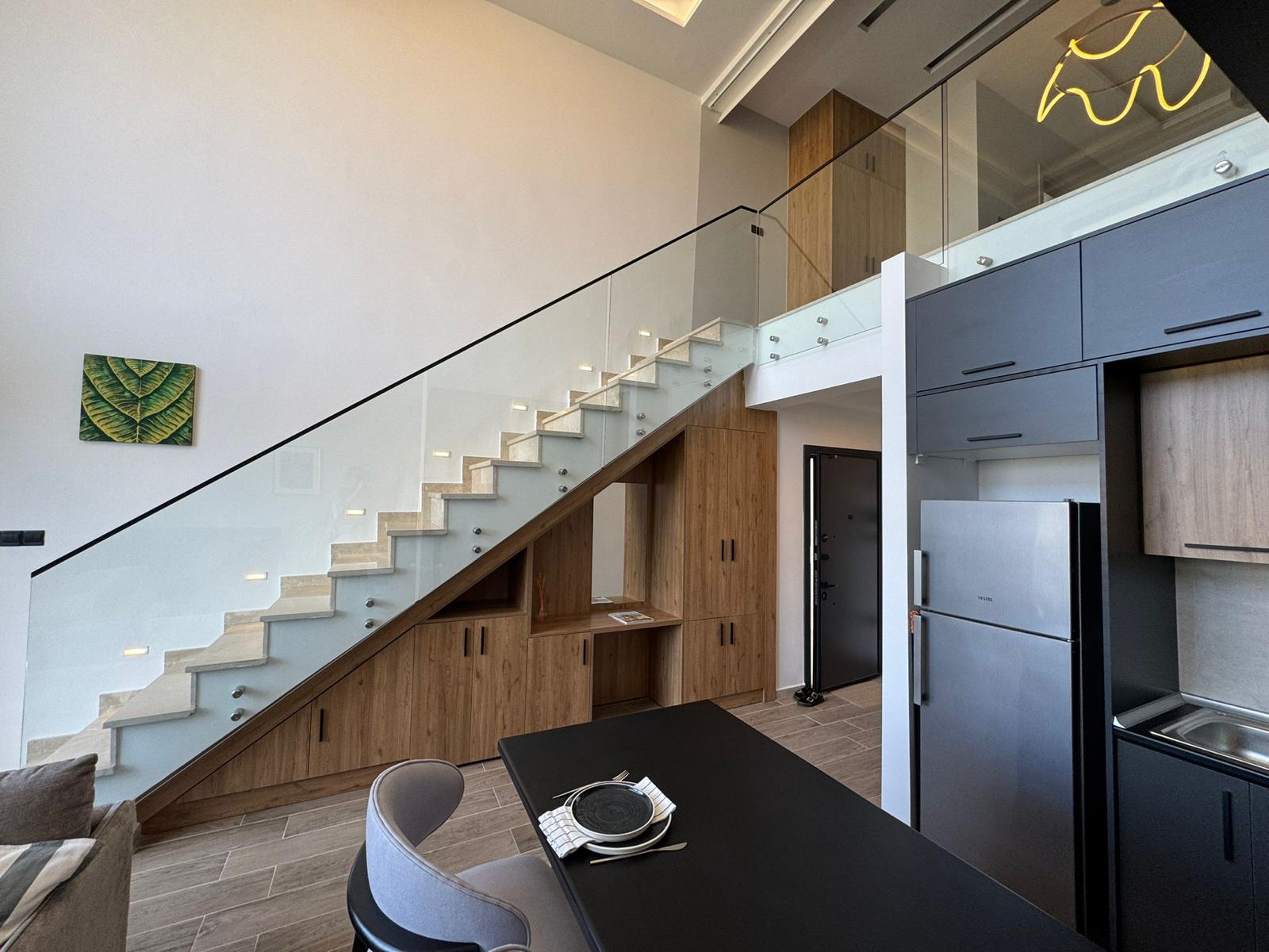 A spacious two-level 2+1 loft is offered for sale in the Olivia Court residential complex, located just 350 meters from the sea, in one of the most picturesque corners of Lapta. The peaceful atmosphere and proximity to the mountains and the sea coast make this property ideal for living and relaxing.