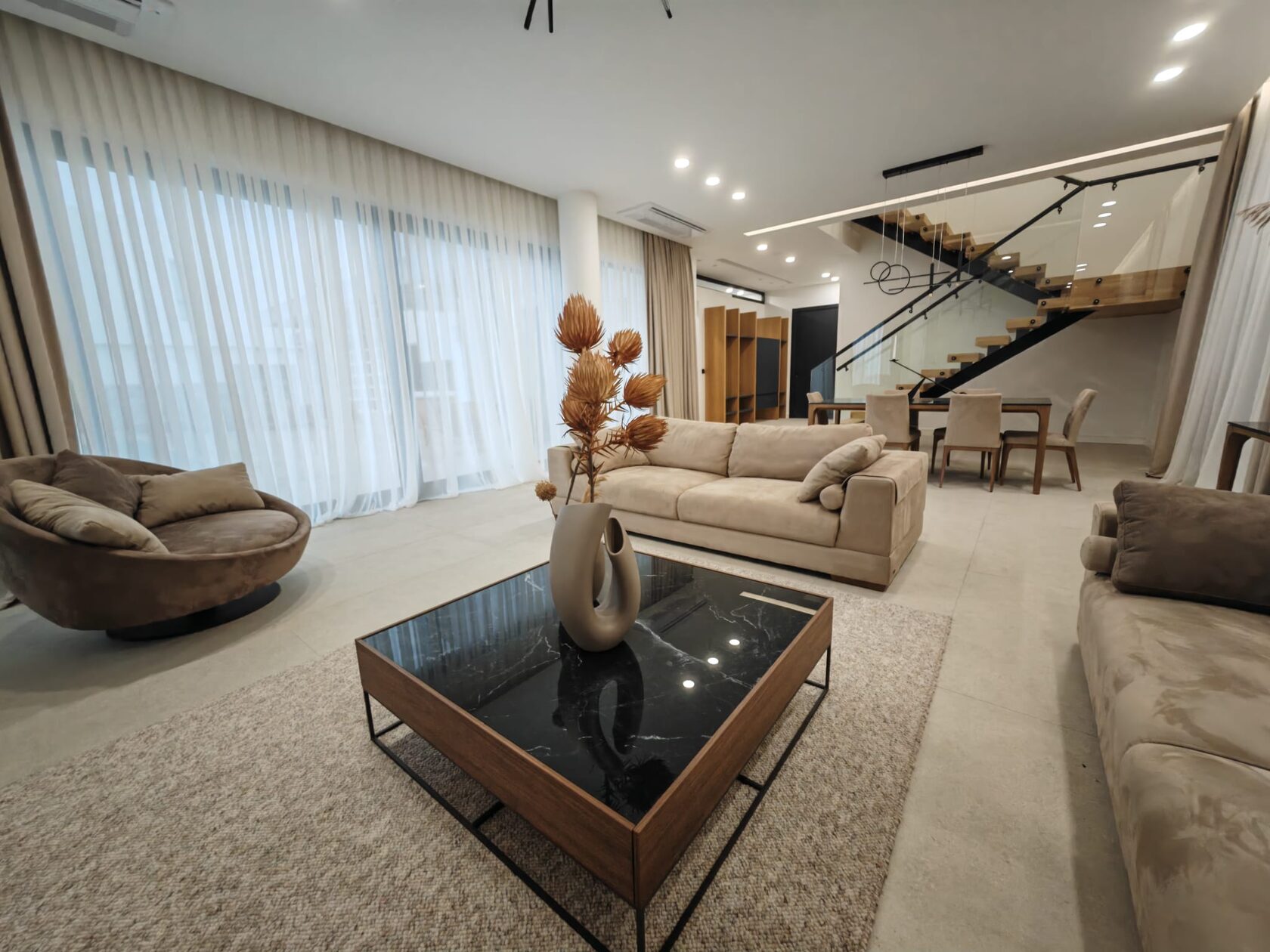 The location is ideal for families: the ESK English school is within walking distance, and the center of Kyrenia is only a 10-minute drive away. The facades of the house are covered with self-cleaning plaster, and the water softening system ensures the longevity of your appliances and your health.