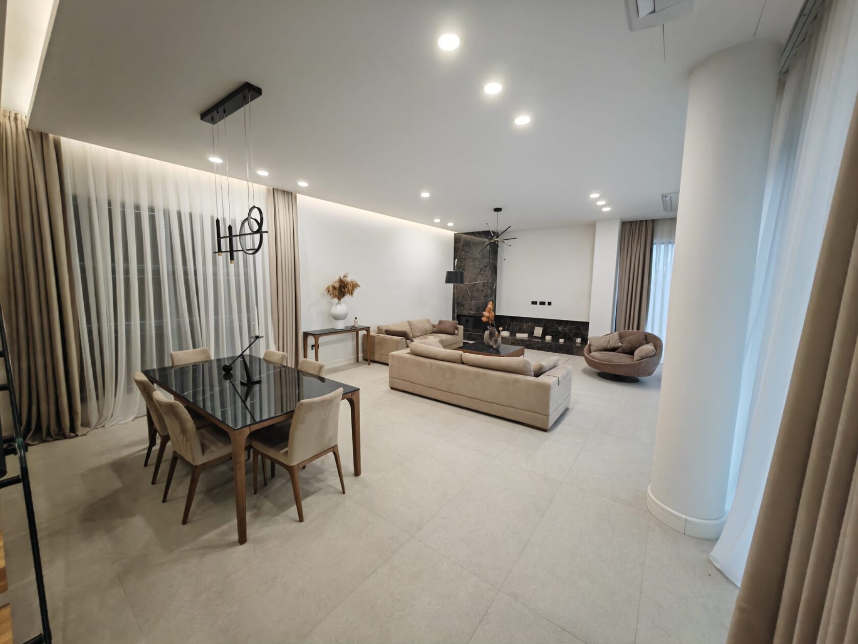 Your complete independence is ensured by a powerful 10 kW solar station (officially registered), a generator, and a huge 9-ton water supply. The engineering systems are impressive: water-heated floors from a heat pump, a VRF system even in the dressing room, and supply and exhaust ventilation in every bedroom.