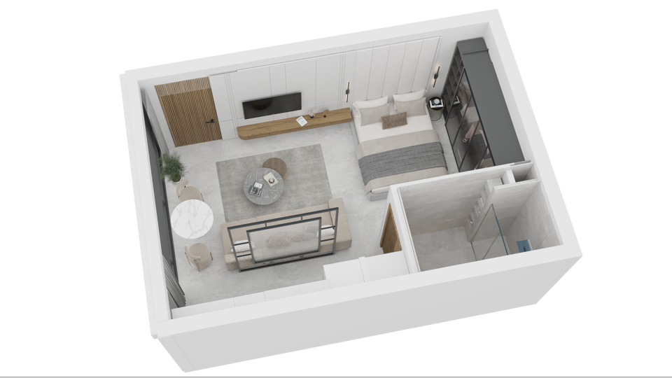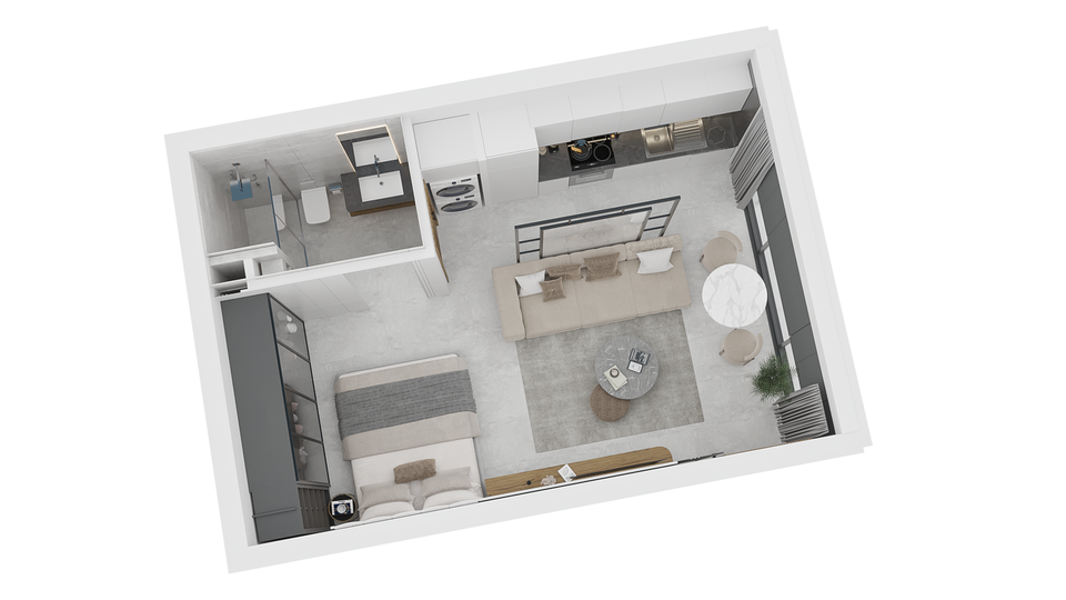 Modern 1+0 studio — functional layout, high-quality finishes, view of the sea/complex grounds (choose the one you need), possibility of renting out or comfortable living.