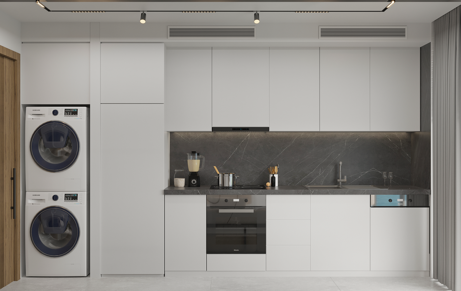 A stylish studio apartment is offered for sale in the premium CASA DEL MARE complex, one of the most striking projects on the first coastline in the Esentepe area.